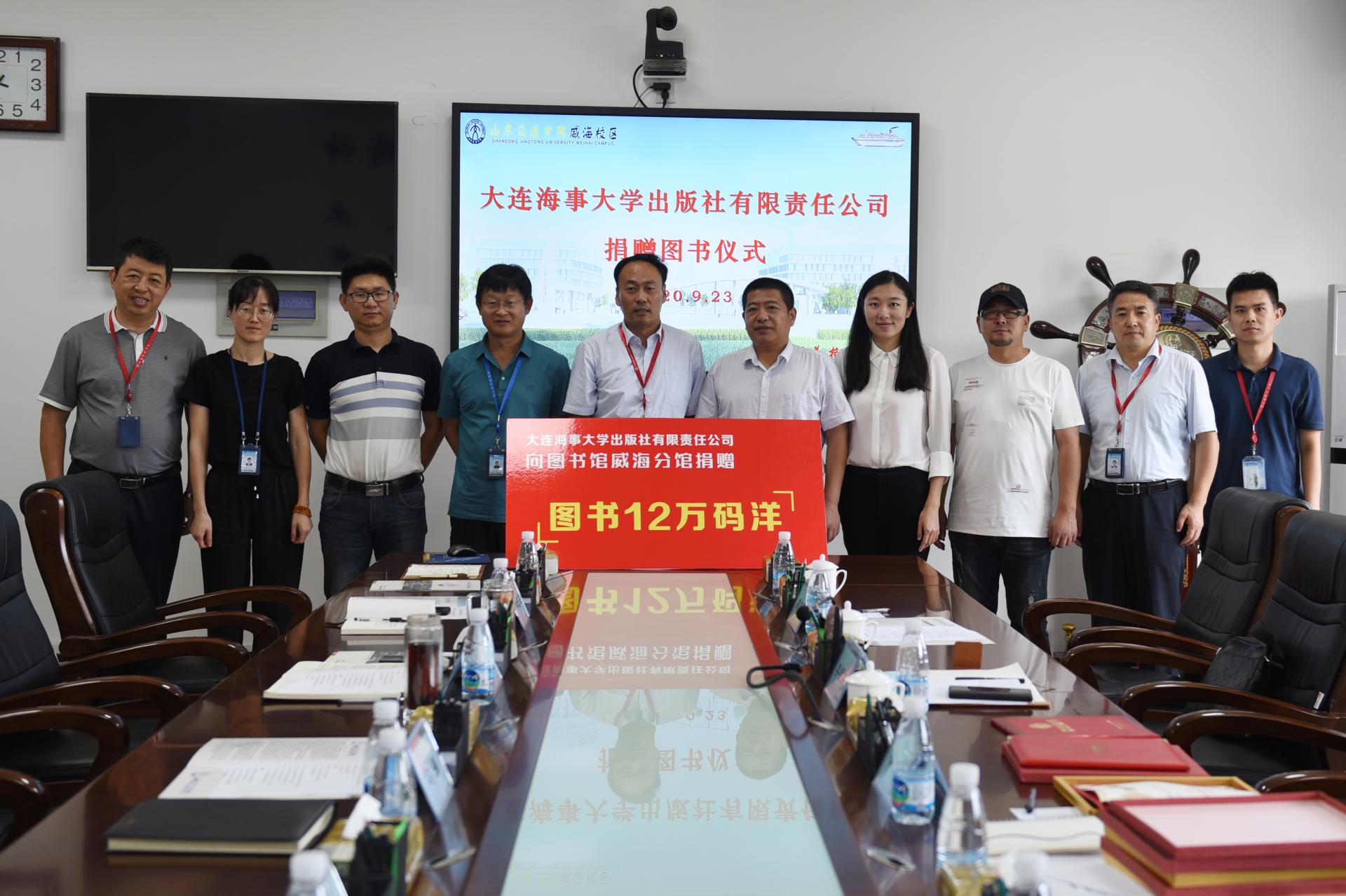 9月23日,大连海事大学出版社副社长李明阳一行3人访问威海校区,向图书馆威海分馆捐赠2366册12万码洋图书。威海校区党委副书记、管委会副主任刘庆波在会议室主持捐赠仪式。