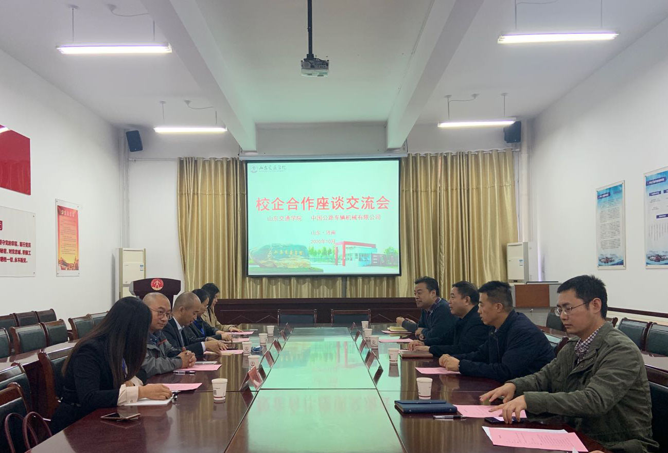 10月22日下午,我校与中国公路车辆机械有限公司在长清校区工程训练中心D205举办校企合作座谈交流会。中国公路车辆机械有限公司安全总监、战略与运营管理部总经理王玉年,汽车工程学院分党委书记刘树民,工程机械学院分党委书记陈加峰参加会议。
