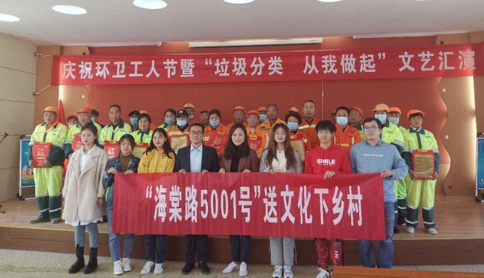 10月24日,外国语学院“海棠路5001号”专业外语剧团送文化下乡村活动走进天桥区环境卫生管护服务中心,为环卫工人们带来了一场精彩的文艺演出。