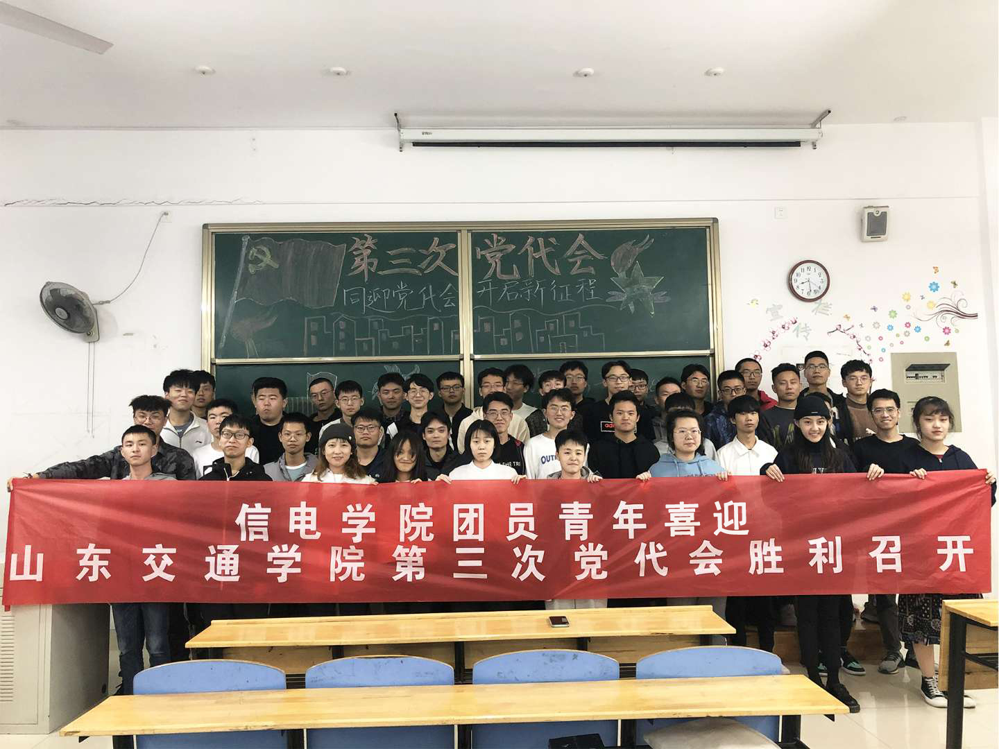 信电思想汇,厚植爱校情。学院2018级、2019级团支部开展以喜迎党代会为内容的主题团日活动。他们通过绘制精美的黑板报、知识宣讲、宣传海报等方式组织青年团员学习党代会知识,了解学校的发展历史和现状。引领青年团员凝聚思想共识,激发爱党爱校热情。