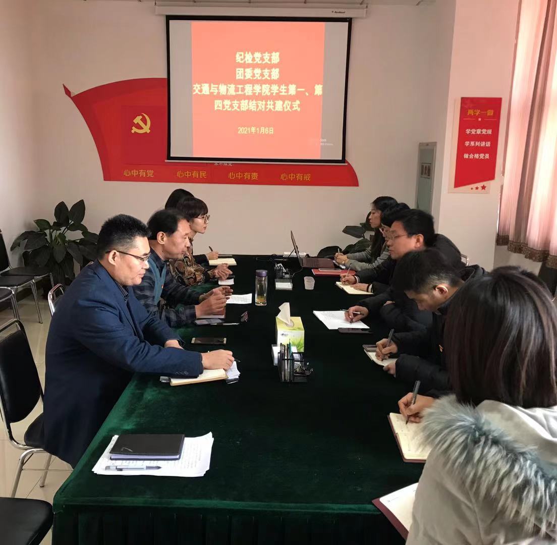 1月6日上午,纪检党支部、团委党支部和交通与物流工程学院学生第一、第四党支部在长清校区办公楼614会议室举行了结对共建仪式。