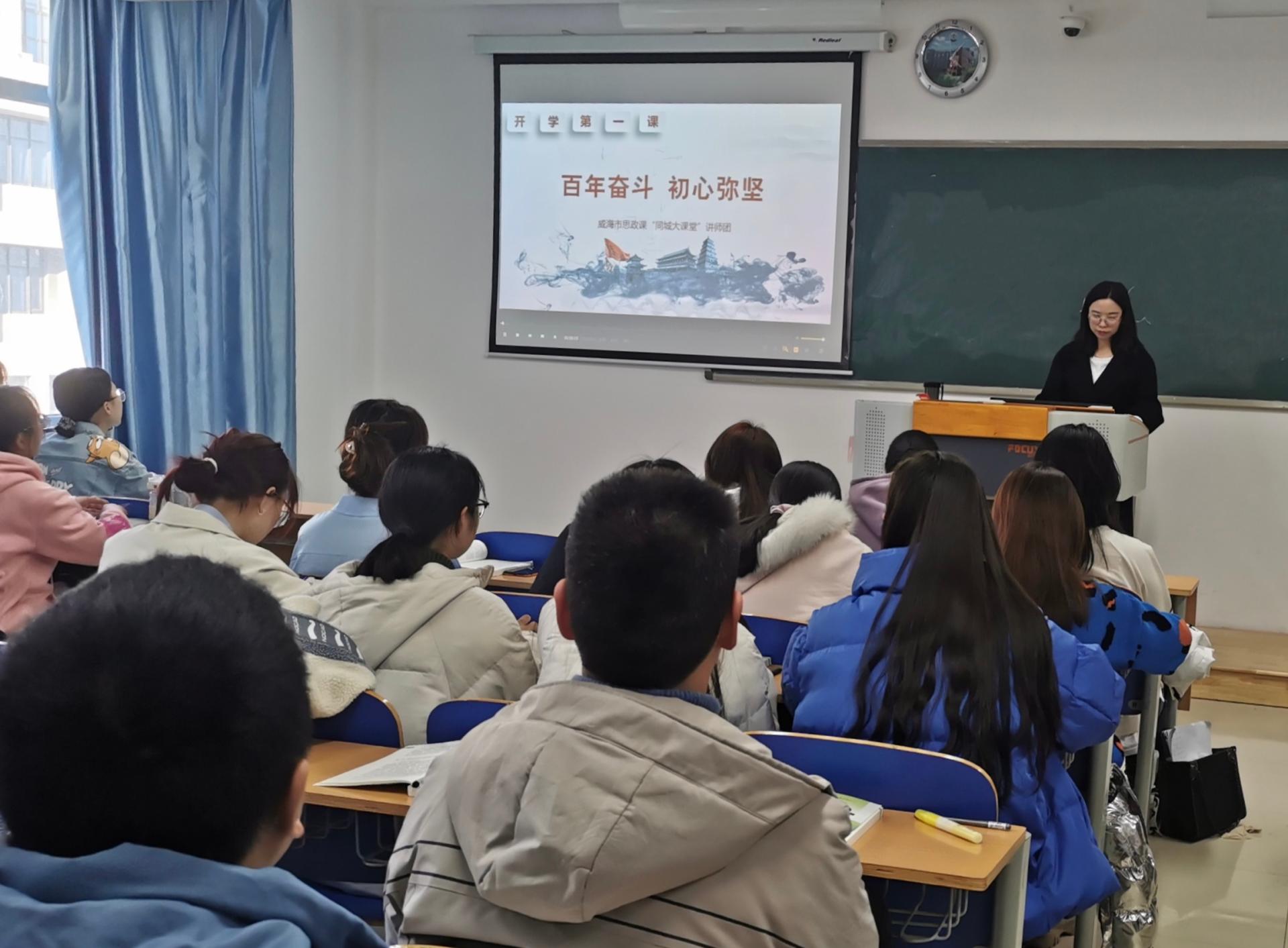 为积极响应习近平总书记在党史学习教育动员大会上的讲话精神,按照山东省教育厅和威海市教育工作委员会的部署,基础教学部政治教研室开展了以“百年潮起 共学党史”为主题的开学第一课活动。
