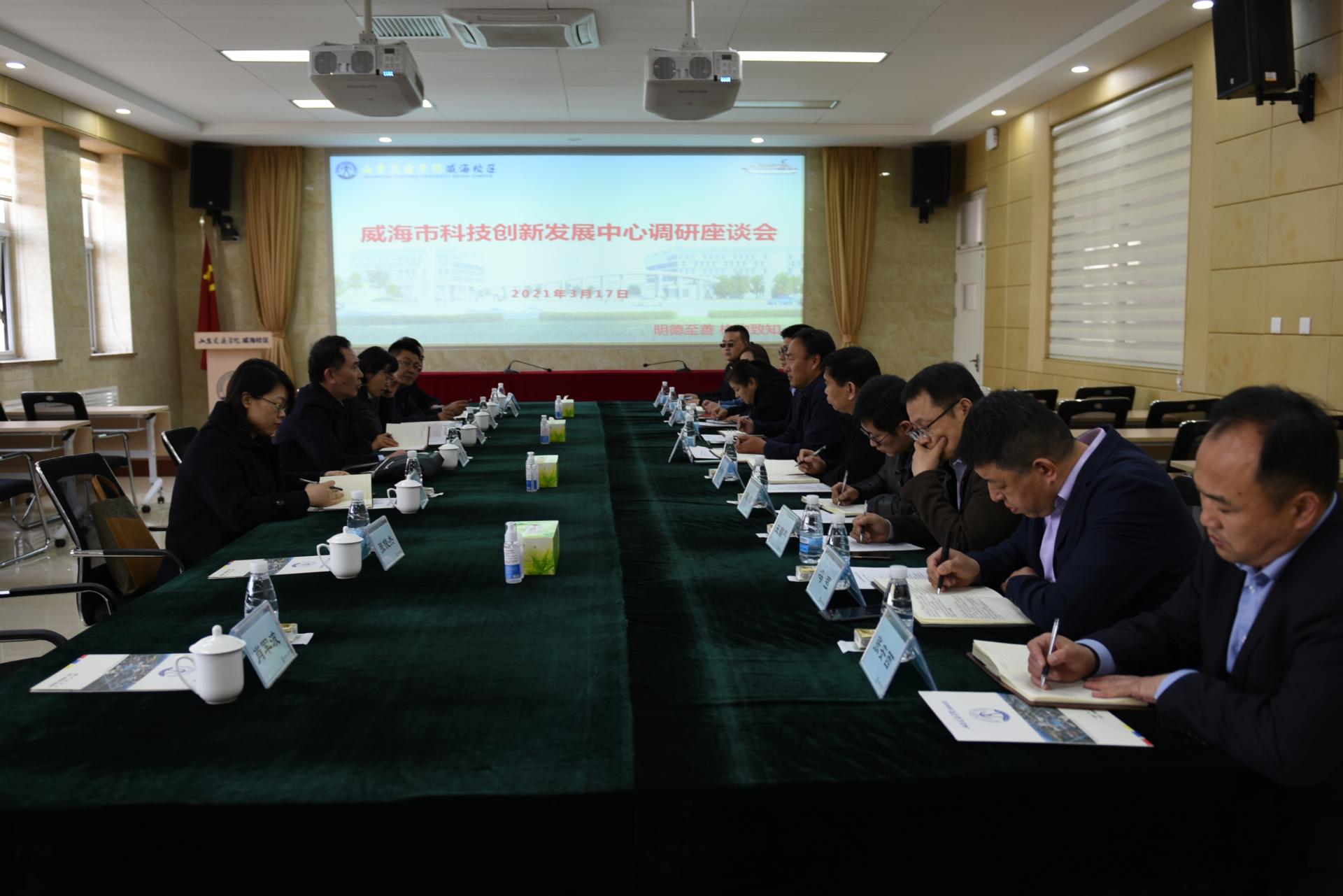 3月17日,威海市科技创新发展中心主任姜松波、威海火炬高技术产业开发区科技创新局副局长袁怡一行6人到我校威海校区就我校产业化条件成熟的最新科技成果进行专题调研。威海校区管委会副主任刘庆波主持座谈会。