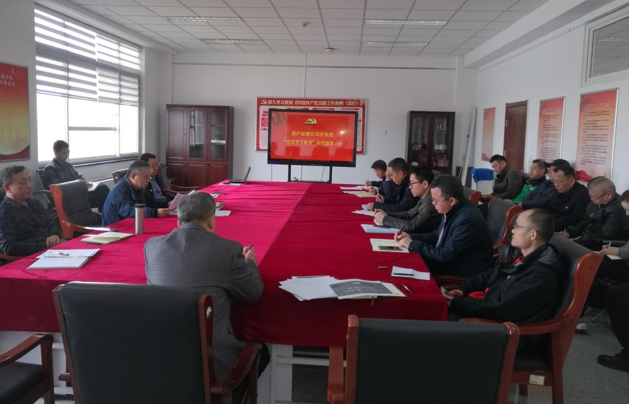 近日,资产经营公司分党委在党员活动室召开党史学习教育动员部署会。资产经营公司分党委委员、各支部书记及支部委员参加会议,会议由分党委副书记冯传荣主持。