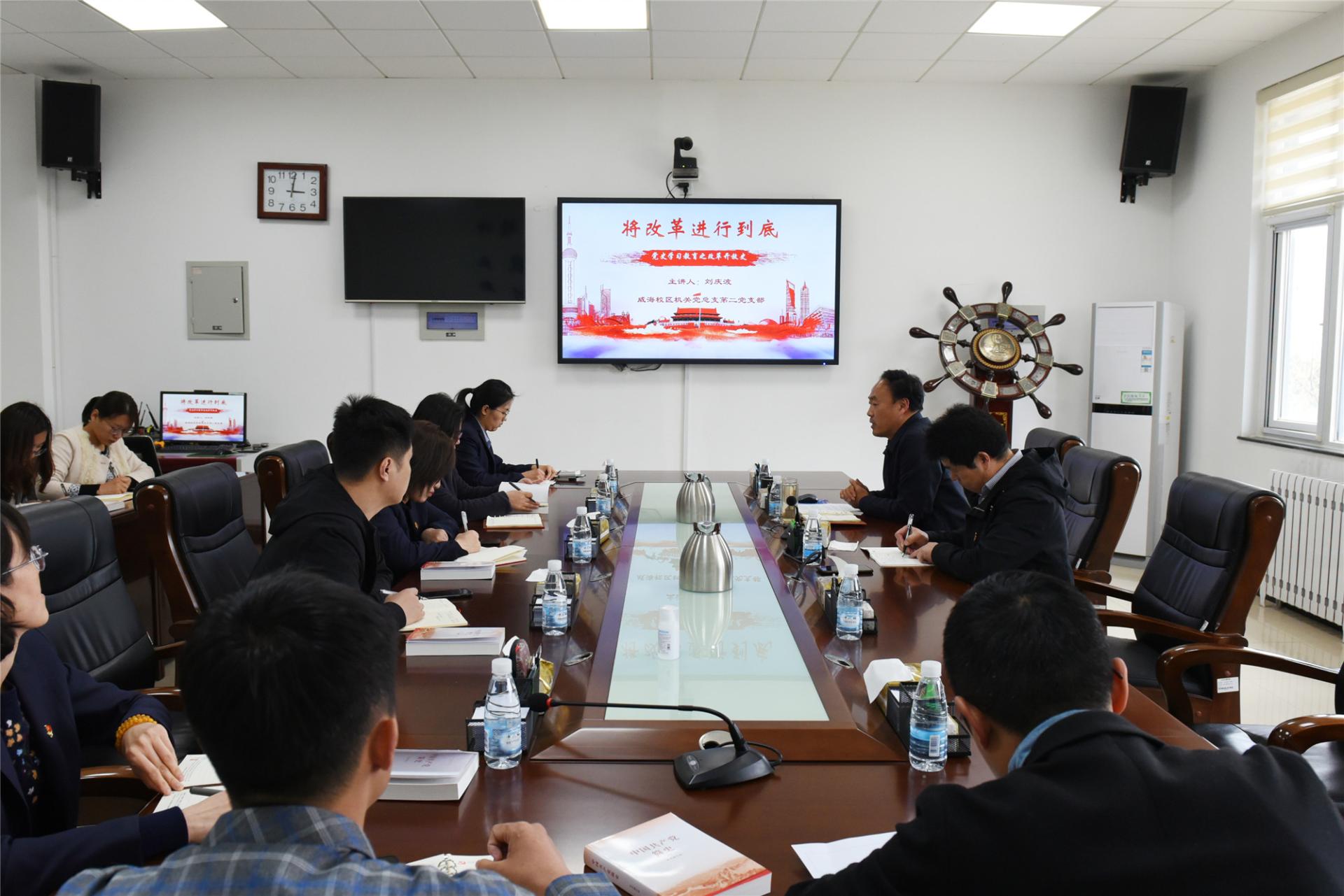 为进一步增强支部党员学习党史的积极性、自觉性,4月20日,威海校区机关第二党支部组织开展“人人讲党史”活动,威海校区管委会副主任刘庆波作为支部党员进行了第一讲。