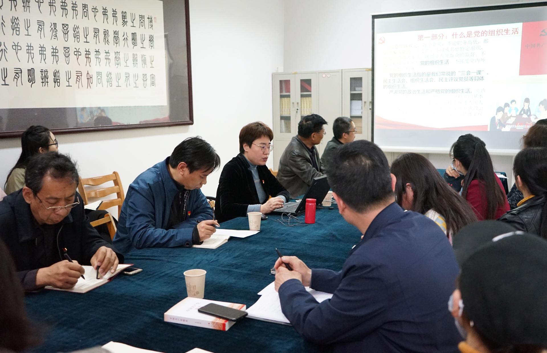 4月21日,图书馆党支部在4楼会议室开展党史学习教育专题宣讲。机关党委书记闫荣双作题为《从党史中看严格党的组织生活的重要性》的专题报告。会议由图书馆党支部书记刘一石主持。图书馆党支部全体党员、入党积极分子和递交入党申请书的教师参加。