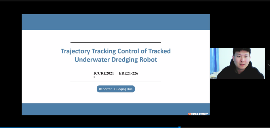 近日,由电气与电子工程师协会(Institute of Electrical and Electronics Engineers)主办的第六届控制与机器人工程国际会议(ICCRE 2021)以网络会议形式举行。我校航运学院智能航运技术研究组研究生薛国庆应邀参加该会议,并以《Trajectory Tracking Control of Tracked Underwater Dredging Robot》为题作论文汇报交流,这是我校学生首次在ICCRE以山东交通学院为第一署名单位发表文章。