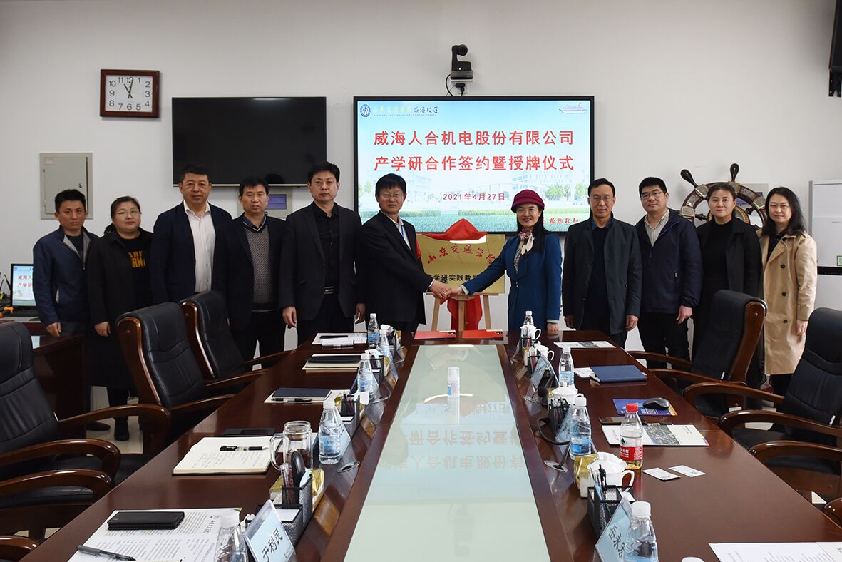 4月27日上午,船舶与港口工程学院与威海人合机电股份有限公司在威海校区会议室举行产学研合作签约暨授牌仪式。