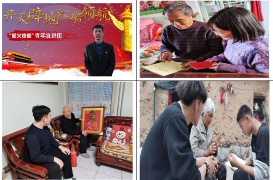 “心贴心”聆听。青年宣讲团成员们积极寻访基层老党员,有在抗美援朝中的柳欣绪爷爷、有在基层无悔奉献的赵臣爷爷等,通过聆听老同志在党的百年历程中与党和国家同频共振的生动故事,重温时代记忆,感受榜样初心,汲取奋勇向前的力量。