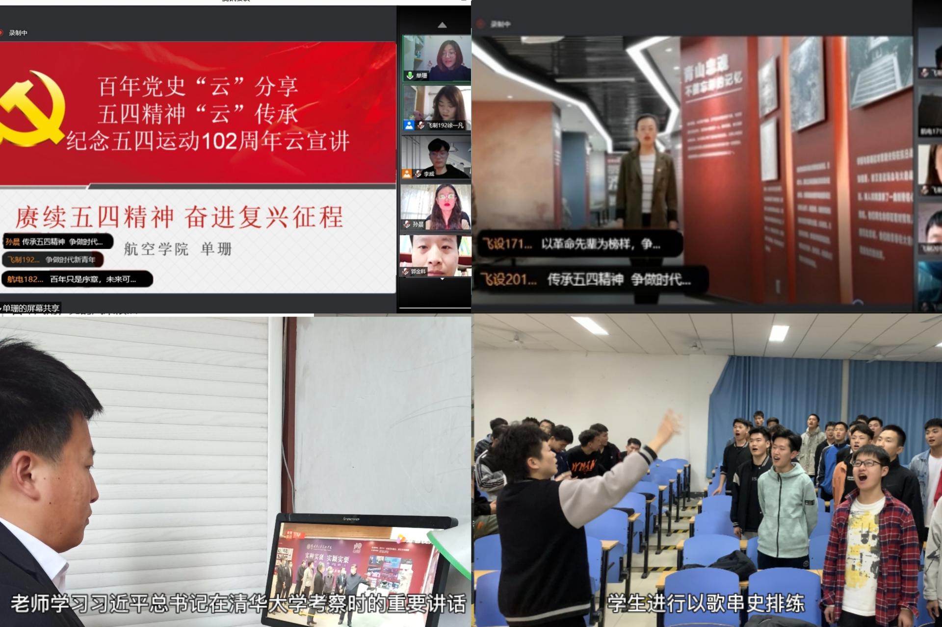 在五四青年节到来之际,航空学院通过腾讯会议,组织开展百年党史“云”分享 五四精神“云”传承,纪念五四运动102周年云团课云宣讲活动,近三百师生参与此次活动,活动视频在学院微信公众号进一步展播。