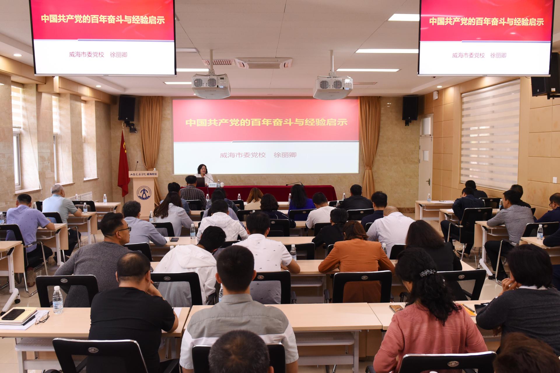 为深入学习百年党史,感悟百年风华,扎实推进学史明理、学史增信、学史崇德、学史力行,6月2日,威海校区机关党总支在校区第一报告厅举办党史学习教育专题党课,邀请中共威海市委宣讲团成员、威海党性教育基地主讲教师、威海市委党校副教授徐丽卿同志作题为《中国共产党的百年奋斗与经验启示》的专题讲座。威海校区机关党总支书记刘庆波主持会议。