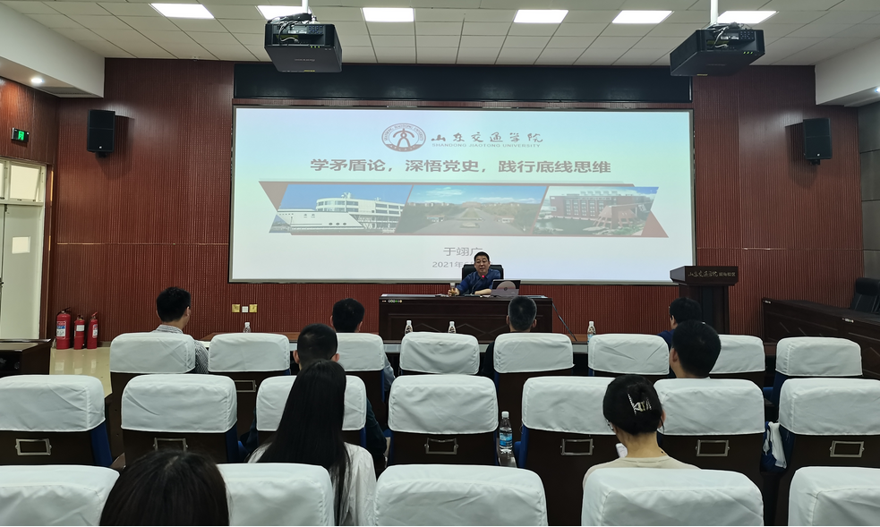 为进一步强化党史学习教育实效,引导辅导员将党史学习教育与本职工作紧密结合,6月2日,党委学生工作部部长于翊广在威海校区第二报告厅以《学矛盾论,深悟党史,践行底线思维》为题,为威海校区学生工作人员集体上党课。