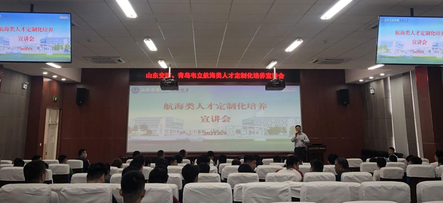 6月9日下午,航运学院航海类人才定制化培养首场企业宣讲会在威海校区第二报告厅举行。青岛韦立国际船舶管理有限公司船员部副经理李京彬等一行3人,航运学院领导班子及辅导员,100余名学生参加会议。会议由航运学院副院长于洋主持。