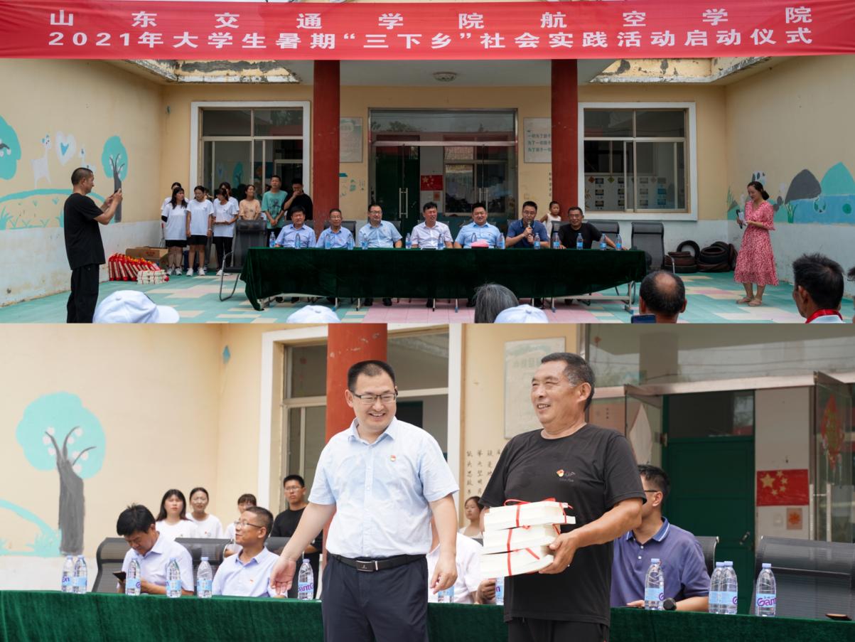 在汶上集镇丁古刘庄村,举行了航空学院2021年大学生暑期“三下乡”社会实践活动启动仪式,第四轮省派第一书记、审计处处长孙明灿为丁古刘庄村党员捐赠了党史学习教育学习读本;与会领导将航空学院学生党员捐赠的3000元爱心捐款捐赠给了6名高考成绩优秀的贫困学生。活动中,第一书记与青年学生还为老党员送去了米、油等慰问品,感谢他们为党和人民的事业所作的贡献,并叮嘱老党员们保重身体。