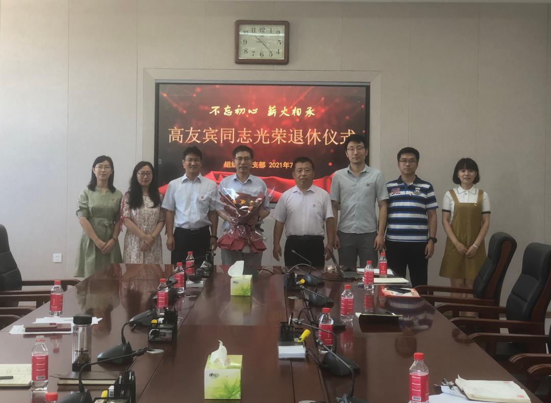 学习结束后,组织部党支部全体党员为即将退休的高友宾同志举行了荣休仪式。学校党委委员、党委组织部部长田杰昌代表组织部党支部向高友宾致以诚挚的感谢和崇高的敬意,回顾了与其共事的点滴过往,希望他在安享退休生活之余,能够继续发光发热,关心支持学校事业发展。高友宾回顾了自己四十余年在校的工作生活,他表示,无论身在何方,始终听党话、跟党走、报党恩,时刻关注学校事业发展,祝福学校蒸蒸日上。组织部其他党员也对高友宾送上了美好祝福。