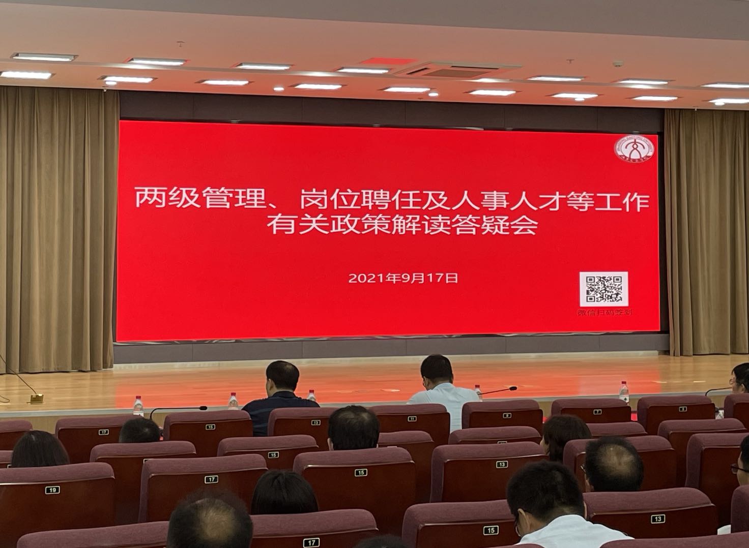 9月17日下午,学校在长清校区明德楼101报告厅召开了两级管理、岗位聘任及人事人才等工作有关政策解读答疑会。