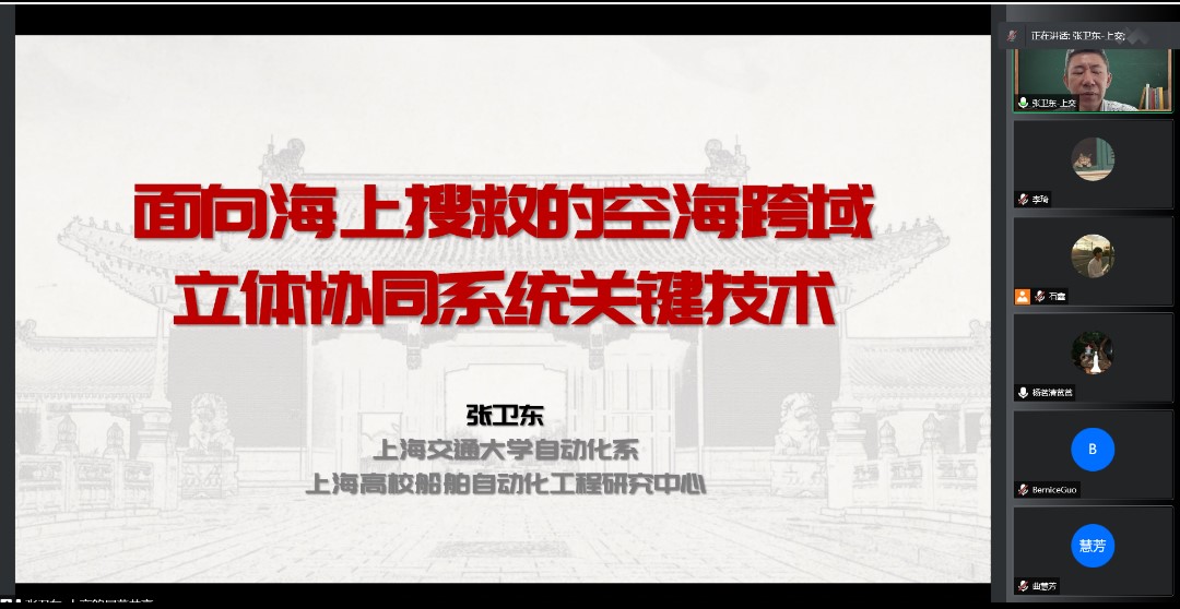 9月23日,上海交通大学张卫东教授以《面向海上搜救的空海跨域立体协同系统关键技术》为题,介绍了一类由无人机和无人艇组成的无人搜救系统,利用无人机搜索范围大、通信距离远、艇续航时间长的优点,可构建响应快、成本低和无人员伤亡风险的空海立体搜救系统。