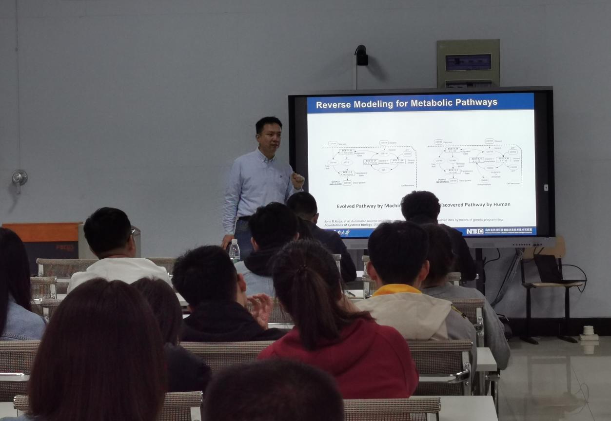 山东省泰山学者青年专家、博士生导师、济南大学信息科学与工程学院教授王琳作了题为《基于机器学习的反向建模》的报告。报告介绍了基于机器学习的反向建模方法,进一步讨论了在进化计算和神经网络方面的一些理论贡献。王琳结合其所在的山东省网络环境智能计算技术重点实验室开展的工作,介绍了其团队基于机器学习反向建模工作中多个具有代表性的案例。