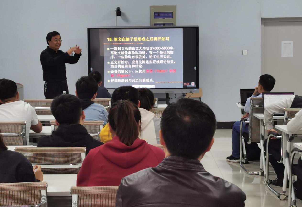 山东大学人工智能与系统控制研究所副所长、博士生导师、教授陈振学作了题为《如何在国际学术期刊上发表论文》的报告。他以中国学者在世界水准的学术期刊上发表论文过程中面临的问题为核心,从论文撰写技巧、期刊投稿策略和与主编的沟通交流等多个方面展开论述,结合自己团队发表论文的经验,深入浅出地为我校师生作了指导。