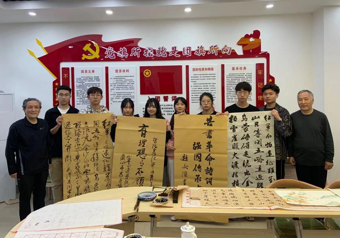 10月13日下午,在重阳佳节来临之际,校团委联合离退休工作处、大学生兰心亭书画协会在体育馆A118共同举办了“共书革命诗词 强国传承有我”主题书画创作活动。退休老党员赵中利教授、刘俊利教授,校团委负责同志、相关工作人员及学生代表30余人参加活动。