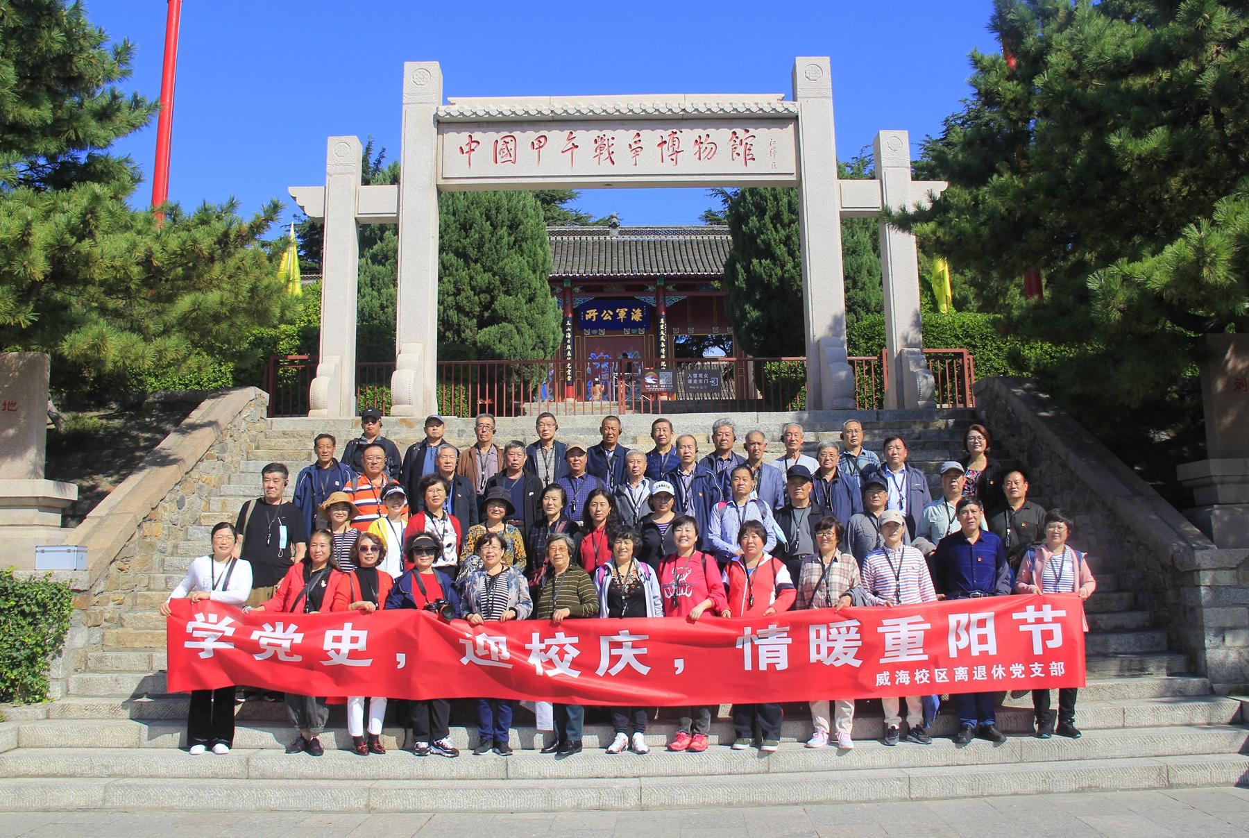 为进一步推动党史学习教育走深走实,在重阳节即将来临之际,10月13日,威海校区离退休党支部组织近50名离退休老同志赴胶东(威海)党性教育基地刘公岛教学区,开展以“节日里的党史学习教育”为主题的“学党史,迎校庆,情暖重阳节”活动。