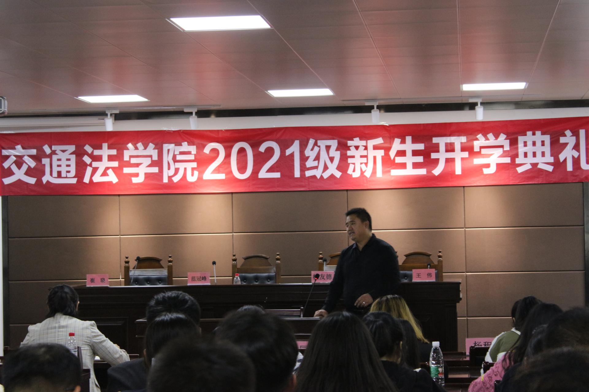 在学校65周年校庆来临之际,10月13日,交通法学院邀请优秀校友返校与2021级新生进行交流,交通法学院相关负责人、优秀校友代表、学院师生代表参加交流会。