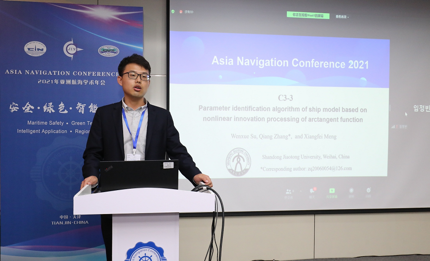 我校航运学院硕士研究生苏文学在年会分组会议上发表了题为《Parameter identification algorithm of ship model based on nonlinear innovation processing of arctangent function》的主题演讲,受到了与会专家学者的一致肯定,这也是我校研究生首次参加亚洲地区最高水平之一的航海类学术会议。航运学院副院长张强受邀主持了年会部分分会,与来自亚洲各国的专家学者进行了友好而深入的交流。本次年会为我校与亚洲航海领域专家学者创造了学习交流机会,搭建了我校与参会各单位的交流平台,显著提升了我校在亚洲航海学术界的知名度。