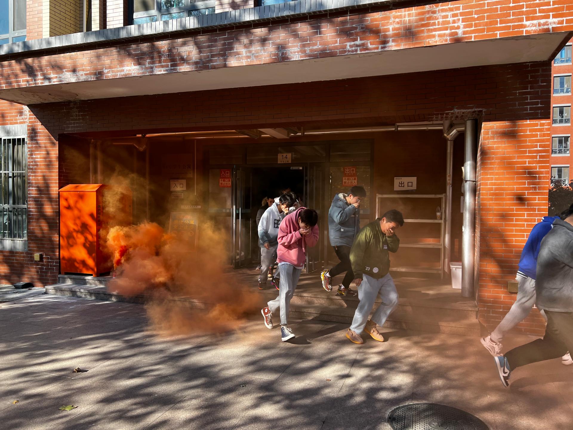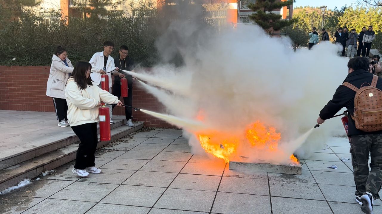 11月10日,国际教育学院、顿河学院联合安全管理处组织100余名学生在长清校区14号公寓组织开展了消防安全技能培训及实地演练。演练前,安全管理处消防队队长为同学们讲解了疏散逃生的主要环节和注意事项并演示了灭火器的使用方法。随后,烟雾四散,警报启动,同学们按注意事项正确操作,快速有序撤离现场。