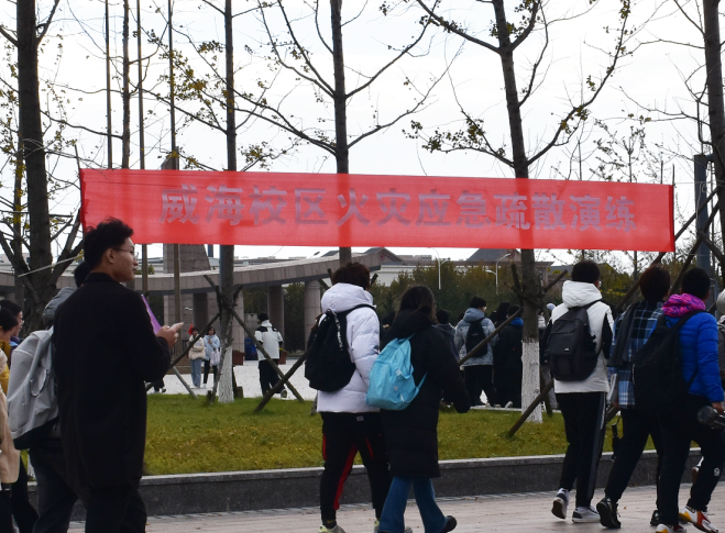 11月9日,威海校区在教学楼内开展火灾应急疏散演练,国际商学院全体师生参加。随着学校警报的响起,应急疏散演练正式开始,演练师生在工作人员的指导下按照指定的疏散路线,快速、有序地撤离到空旷的安全地区。