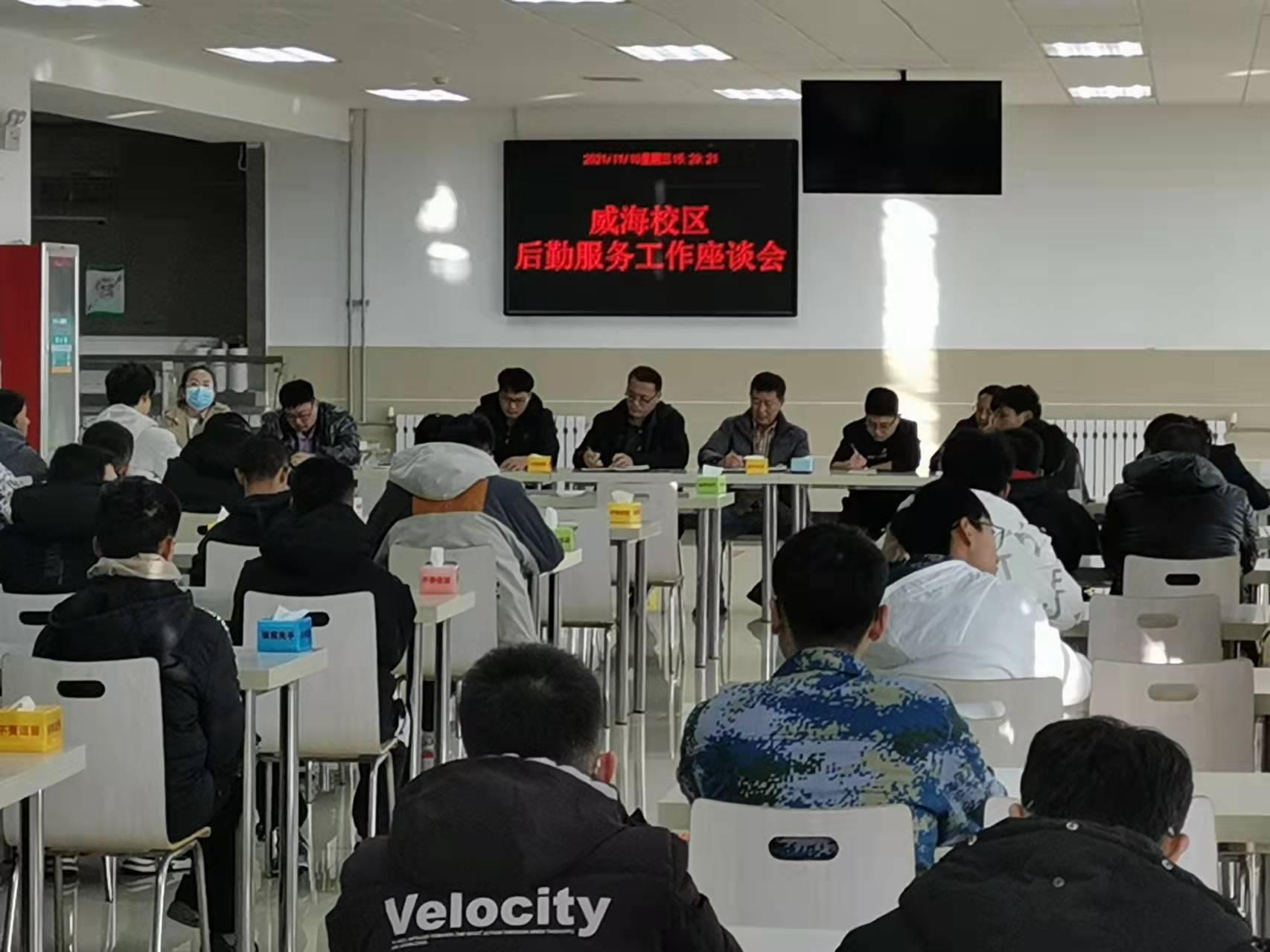 威海校区管理办公室后勤保障部、资产与设备管理部相关负责同志,餐饮公司、物业公司项目经理,学生代表共计60余人参加座谈会。