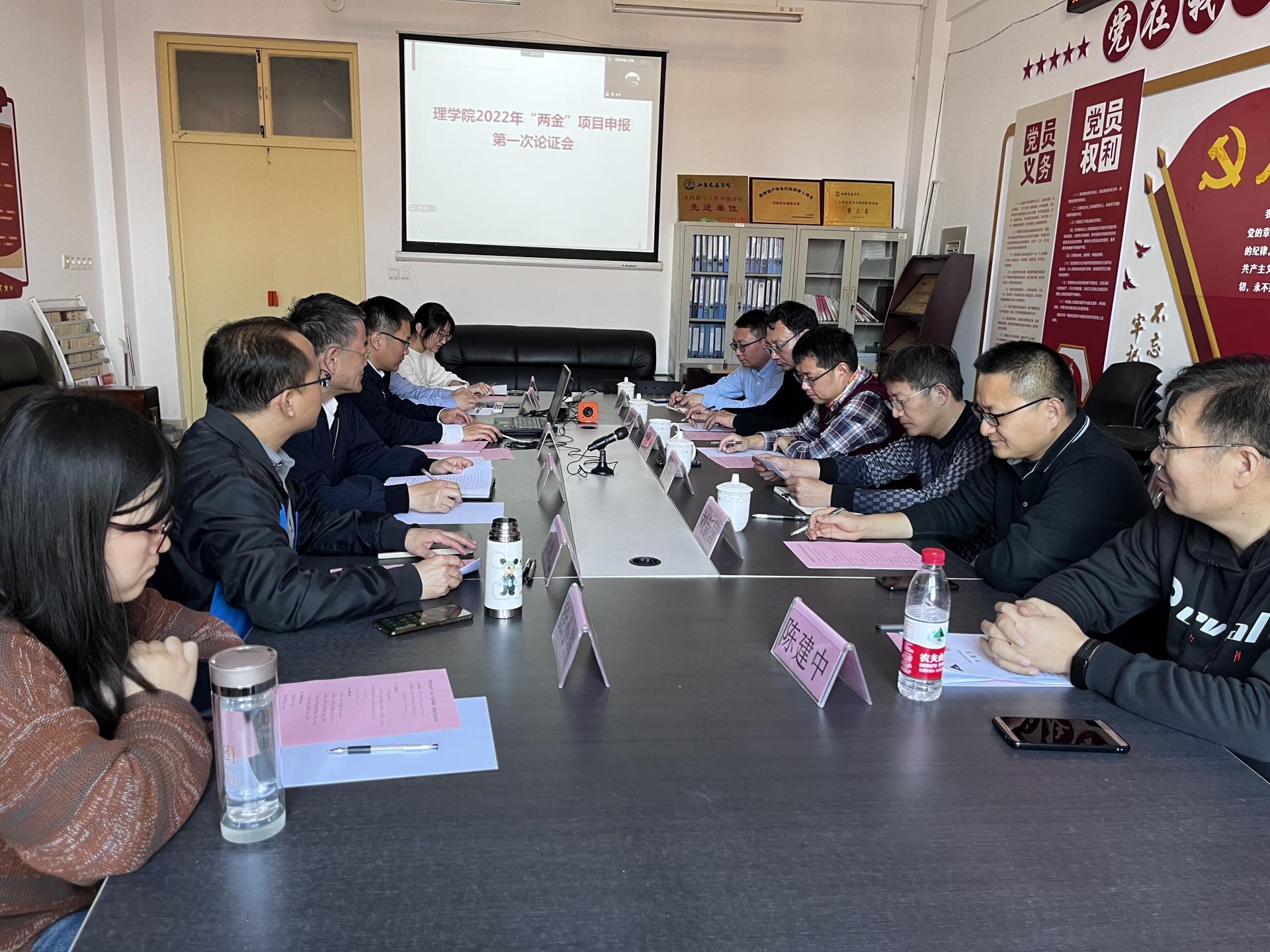 11月18日下午,理学院在长清校区2A406举办2022年“两金”项目申报第一次论证会。会议邀请山东大学王洪超教授、山东师范大学刘新国教授、齐鲁工业大学冷建材教授、重庆科技学院王如转副教授及济南大学任小花老师作为专家进行论证指导。科研处副处长许振峰、理学院院长尹金生、副院长王伟、孙海波及相关博士教师参加了会议。