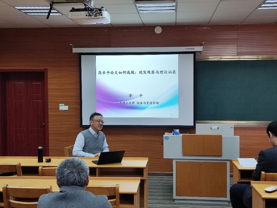 在成长论坛中,李平教授作了题为“高水平论文如何选题:现实观察与理论拓展”的科研讲座,他通过深度剖析自己撰写高水平科研论文的写作历程,深入浅出地讲授了高水平论文的选题方法及写作技巧。