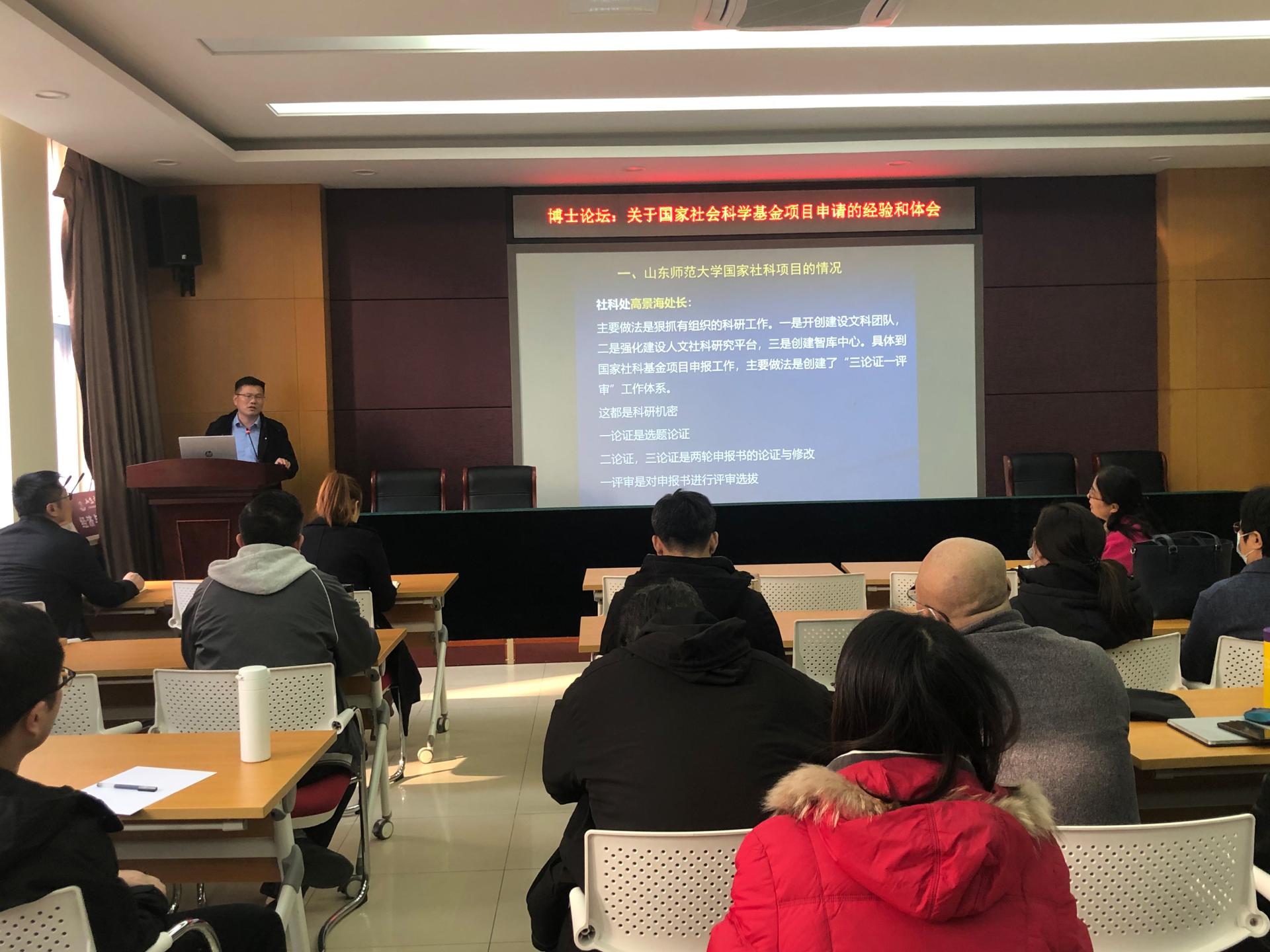 12月15日,由科研处主办、经济与管理学院承办的第十八期“两金”项目专家指导会在长清校区1B104顺利举办。经济与管理学院30余名相关教师代表参加会议。