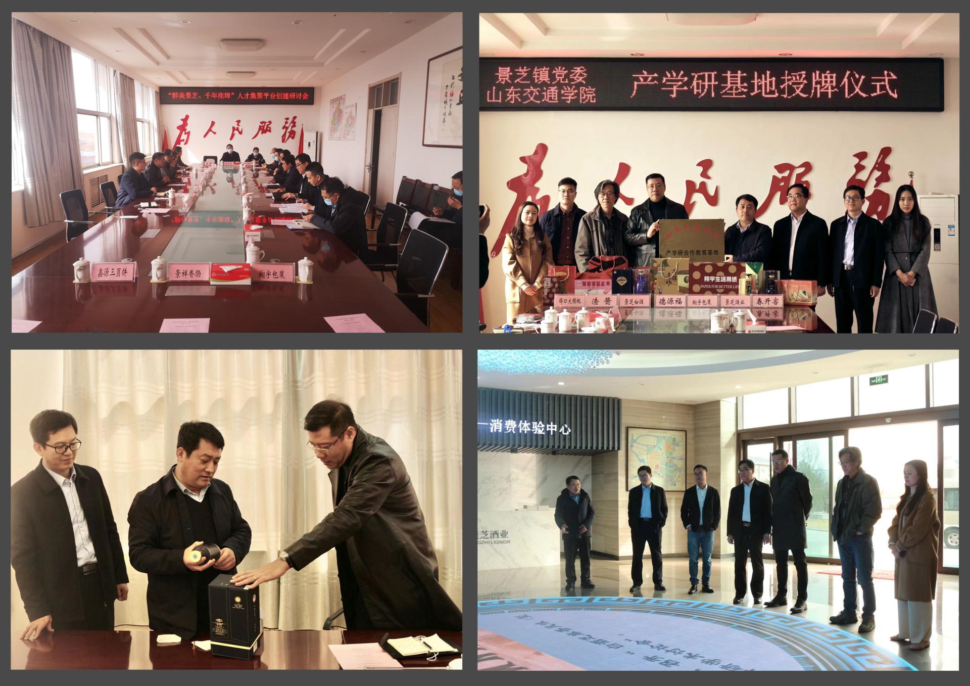 挂牌仪式后,双方前往山东景芝酒业股份有限公司实地参观考察,深入了解企业文化、原材料制备、生产工艺与流程、产品种类与包装等信息,并对产品品牌与包装、消费群体定位、销售模式等方面提出了建议,为CI设计、产品包装设计优化等方面的进一步合作创造了有利条件。