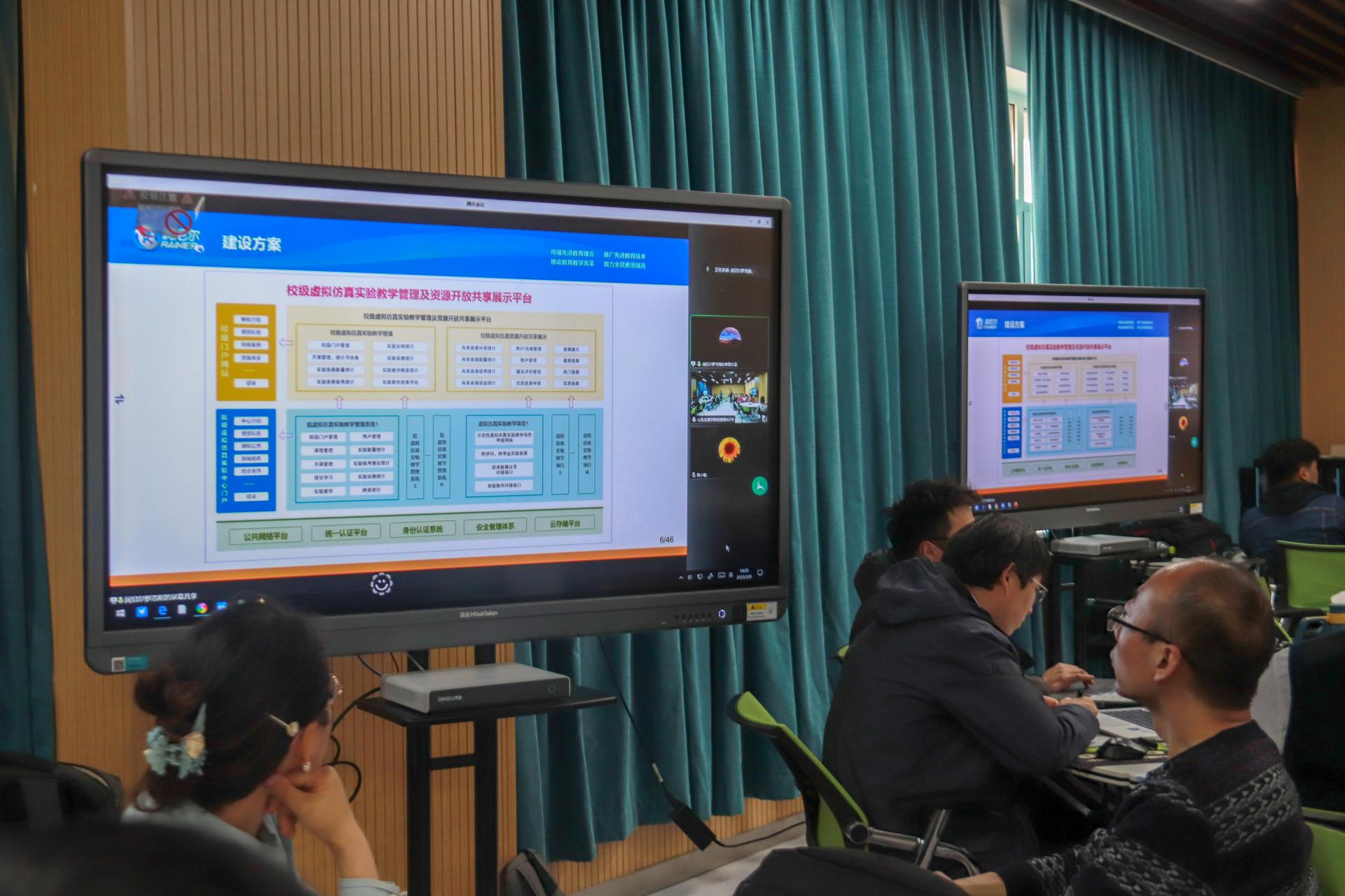 会议邀请北京润尼尔网络科技有限公司副总裁罗浩刚、技术服务部主管李世杰担任主讲嘉宾。罗浩刚以《国家虚拟仿真实验教学一流课程建设与实践》为题,从技术架构、选题颗粒度、实验设计层次及内容要求、实验内容构成要素、历年申报情况分析及校企合作等五大方面作了深入浅出的讲解,并与老师们分享了往年获批国家一流课程的优秀项目。李世杰对我校校级虚拟仿真实验共享平台的功能资源以及操作使用方法进行了详细介绍。