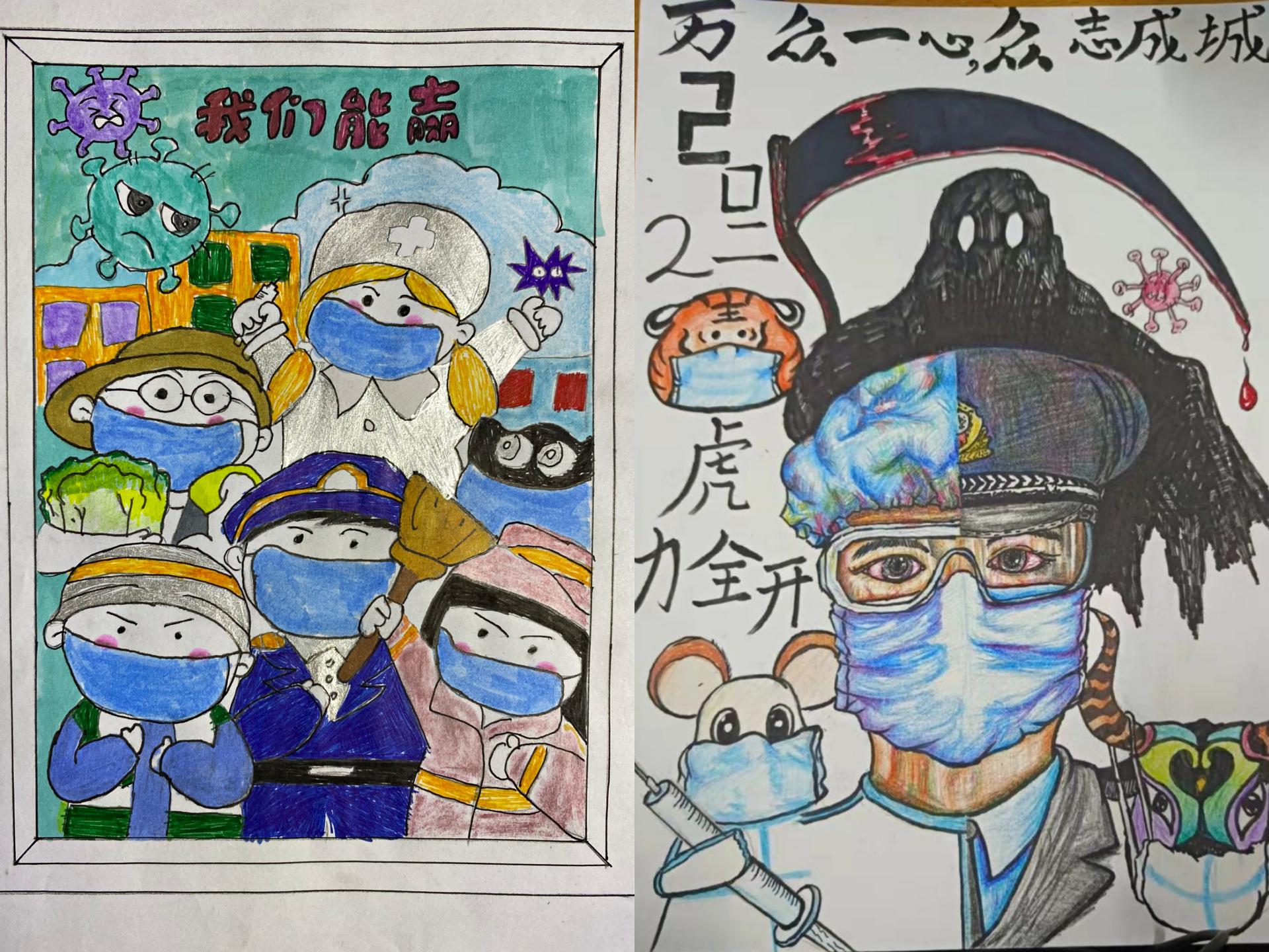 “以画为援,同心战疫”绘画活动。疫情无情,人间有爱,“天使白”“守护蓝”“志愿红”等无数“逆行者”给我们留下深刻印象,为感谢奋战在抗疫一线的医务工作者和志愿服务人员,同学们通过画笔,以漫画的形式反映疫情期间人民众志成城、共克时艰的精神面貌,用笔墨致敬抗“疫”英雄,用艺术作品展现时代精神,用实际行动打赢抗疫攻坚战!