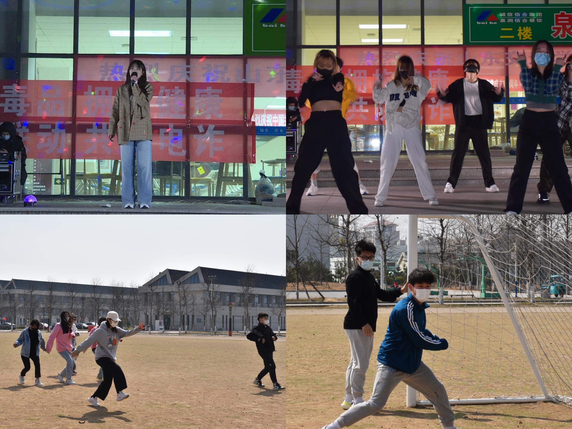 活力尽展青春芳华,团结共筑炫色国商。开展“同心协力,‘艺’起战‘疫’”文艺路演活动,通过歌舞表演,缓解学生紧张情绪,营造积极向上氛围;举办“锻炼战疫情,运动我能行”系列体育活动,通过各类小游戏,鼓励学生运动打卡,科学有效提升体质。