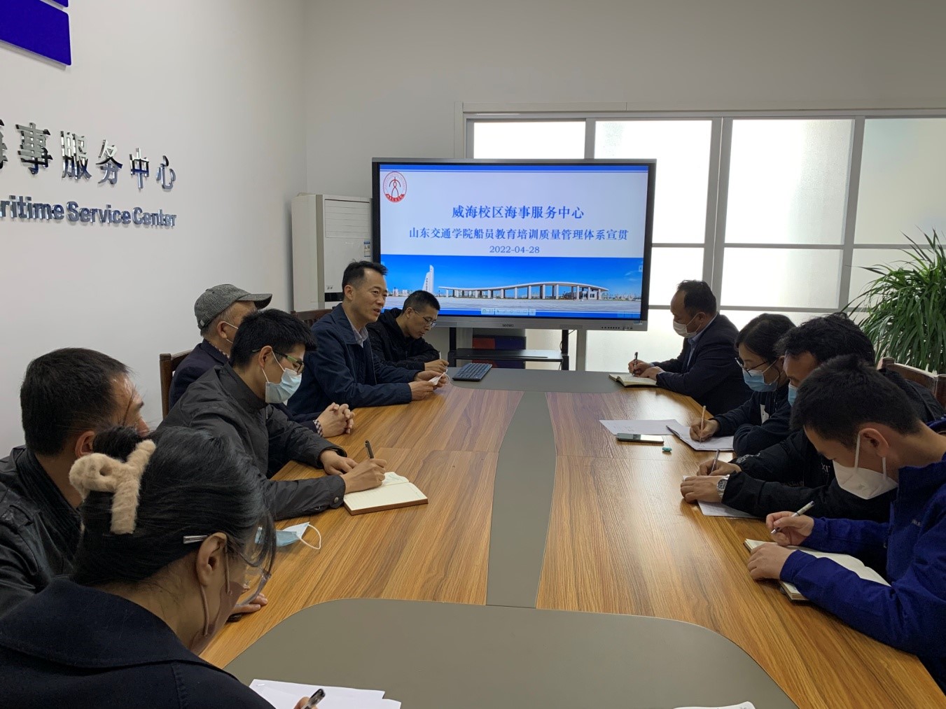 4月28日,威海校区海事服务中心邀请学校船员教育与培训质量管理处在海韵楼106室召开船员教育培训质量体系宣贯培训会。