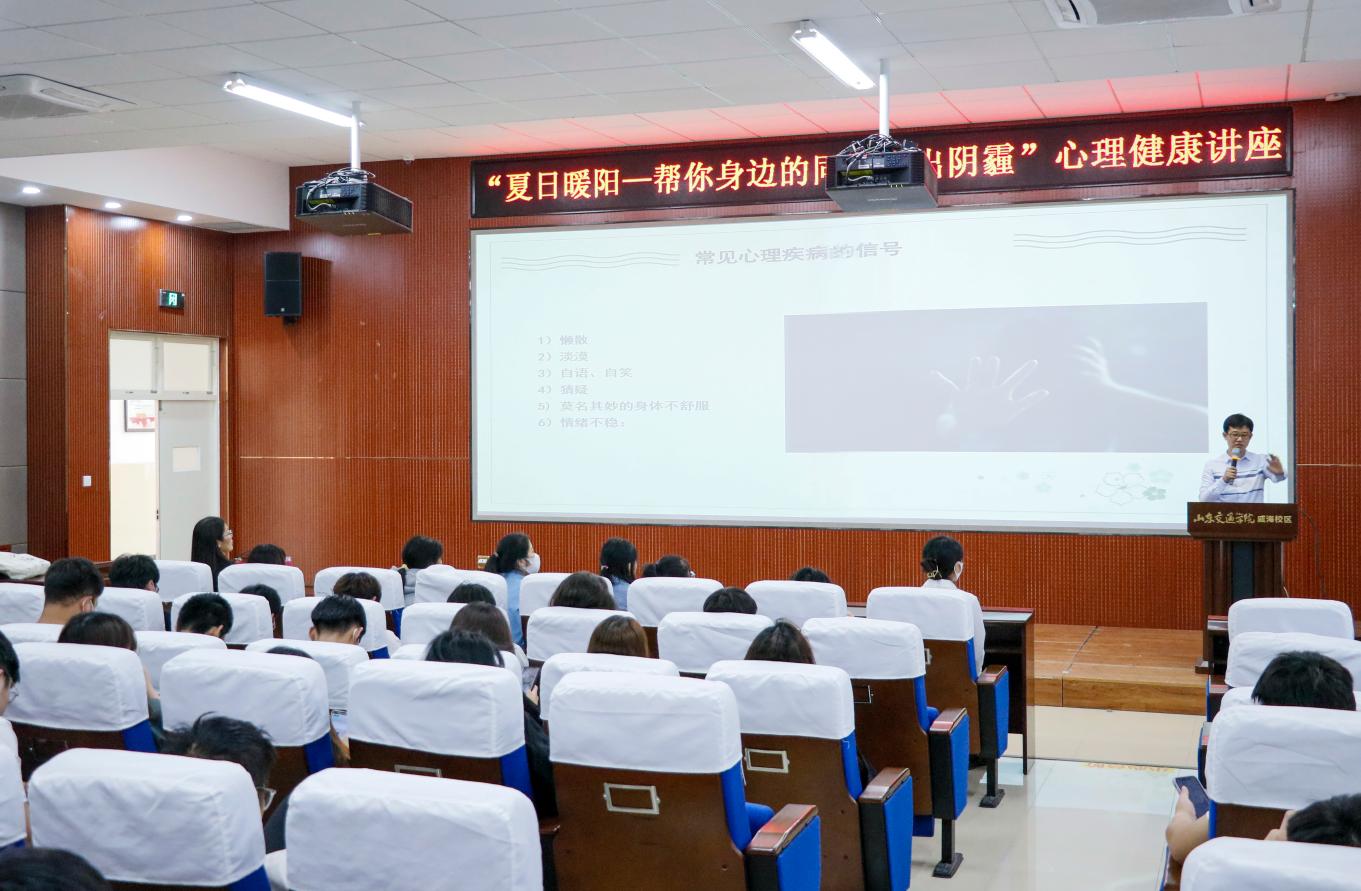 仪式结束后,威海市立第三医院心理健康专家徐超受邀为校区全体心理委员、宿舍心理护航员讲授“夏日暖阳-帮你身边的同学走出心理阴霾”心理健康专题讲座。
