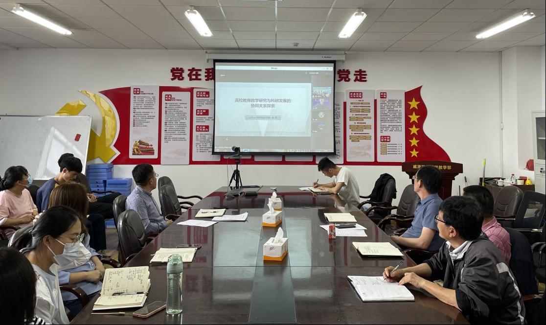 5月25日下午,“高校教师教学研究与科研发展的协同关系探索”专题讲座活动在威海校区2号教学楼A405举行。此次讲座由学校教务处主办、基础教学部通识教育课程思政研究中心承办,讲座通过“腾讯会议”线上平台同时进行。学校50余名教师参加活动。