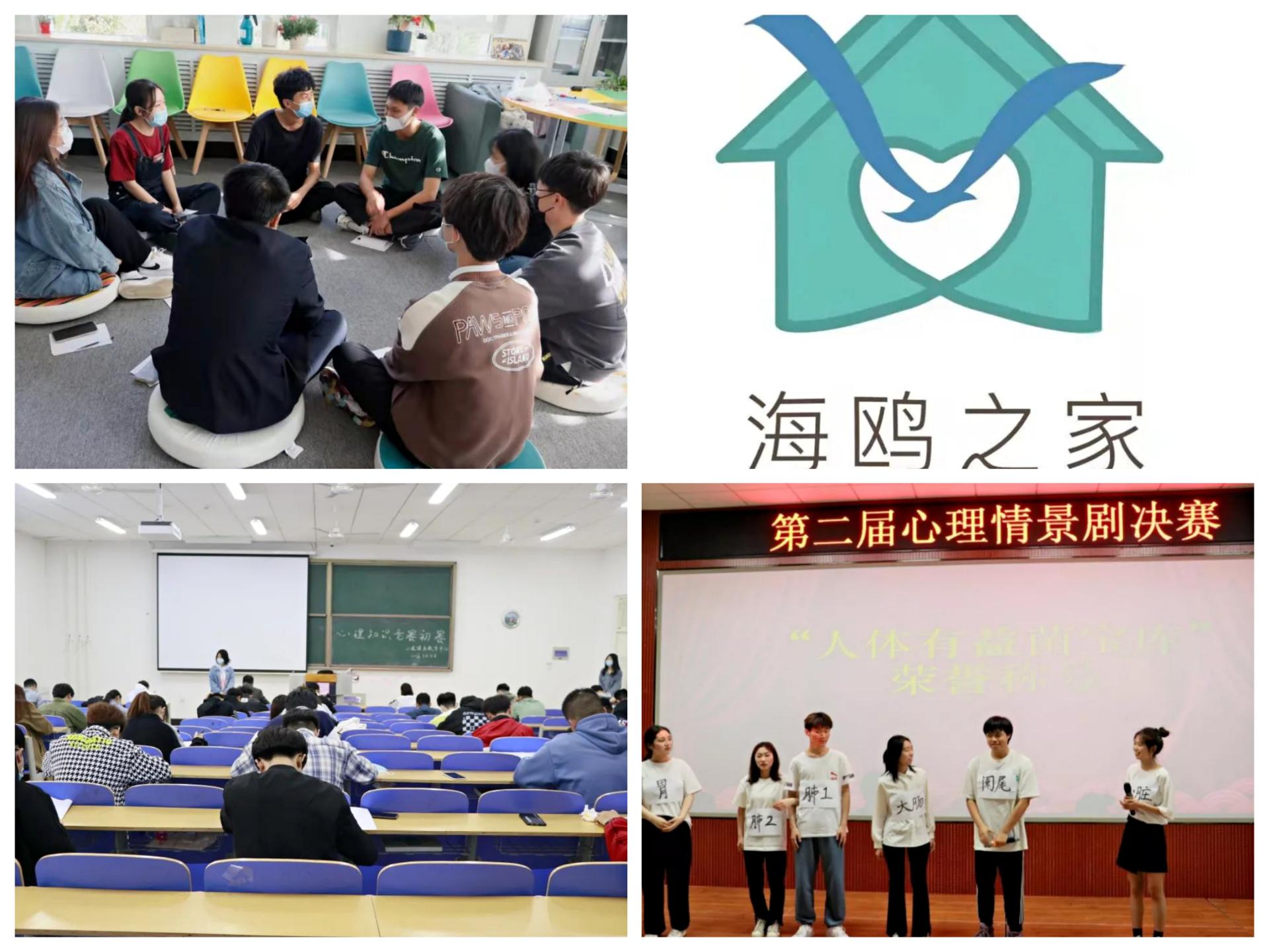 心理健康沙龙活动以“人际交往能力提升及情绪调节”为主题,先后开展了5期。活动就心理防疫常识、社会支持系统的建立、情绪表达的技巧、自我意识的探索等内容展开深入沟通和探索,并通过“相爱人椅圈”“情绪猜猜猜”“我的心情故事”“三个我”“齐眉杆”“真诚赞美”等趣味游戏,让同学们在活动中愉悦身心,在分享中增强沟通交流能力;心理健康教育中心“海鸥之家”徽标设计大赛共收到来自各学院学子的118幅作品,同学们在设计中融入自己对“海鸥之家”的个性化理解,注入众多奇思妙想的内涵;心理健康知识竞赛以笔试形式开展,鼓励同学们积极关注心理健康,了解心理健康常识,从而优化自身心理素质,促进自我完善;心理情景剧大赛涉及容貌焦虑、自我认同等热门话题,各参赛队伍秉着“晒实力,映心理”的态度将创意、想法融进表演中,通过惟妙惟肖的表演反映当代大学生的心理世界、情感空间以及心路历程。