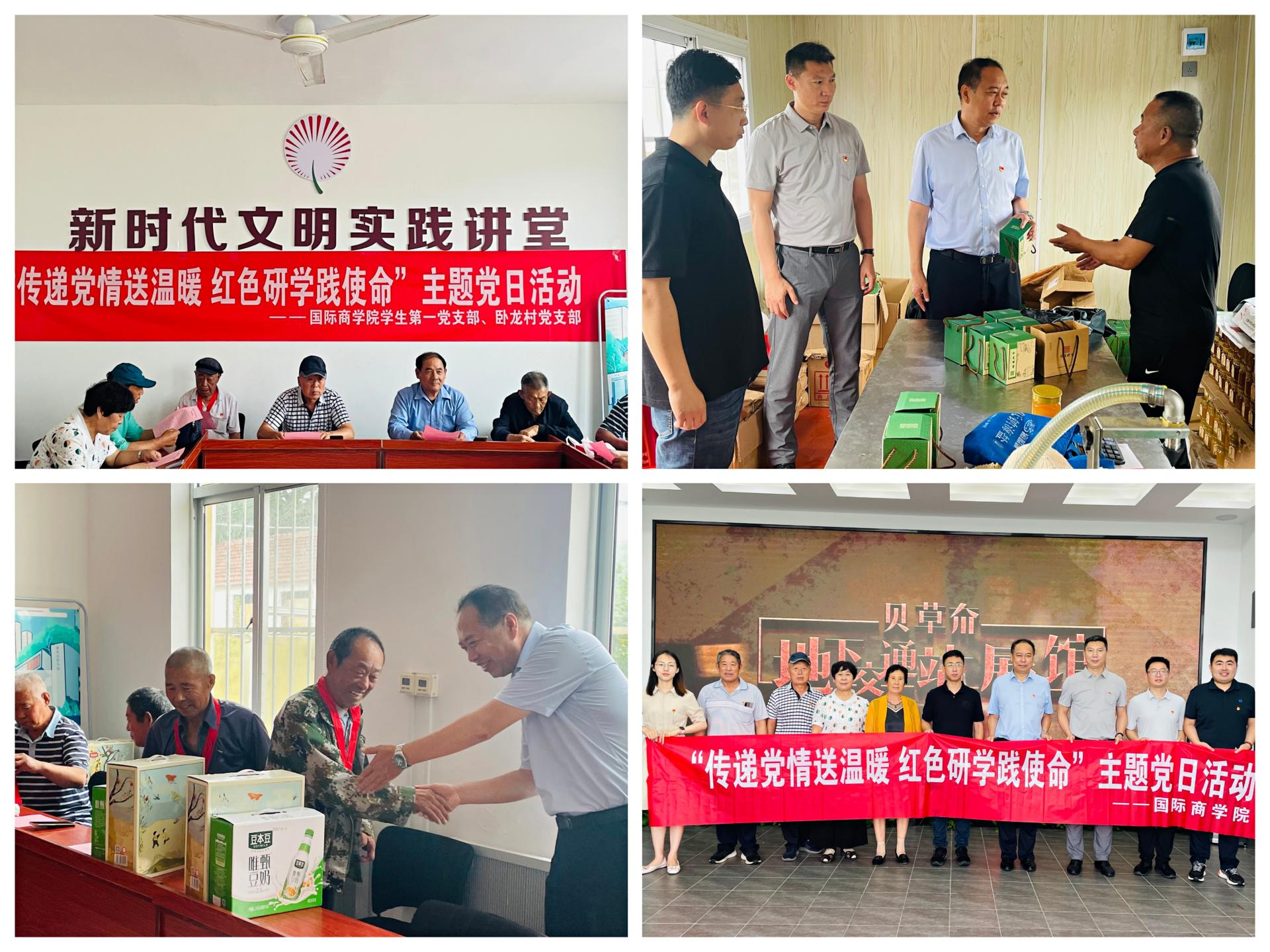在卧龙村的座谈会上,全体党员共同学习了习近平总书记在中央政治局第四十次集体学习时的重要讲话精神。卧龙村挂职第一书记郭浩松、党支部书记刘延本分别介绍了卧龙村的基本情况及养蜂产业发展现状,带领大家了解当地拥有150余年历史的传统养蜂产业;国际商学院党委书记刘佳军详细介绍了学校及学院的基本情况,并表示今后将进一步加强沟通与交流,用好用活学院电子商务专业优势和新媒体平台运营技术,为卧龙村养蜂产业做好宣传,助力乡村振兴发展。会后,大家走访慰问了卧龙村的老党员同志,与“光荣在党五十年”的老党员们进行深切交流,详细询问他们的身体健康状况、家庭生活情况,认真聆听老党员讲述过去的故事,感悟党员的初心和使命。