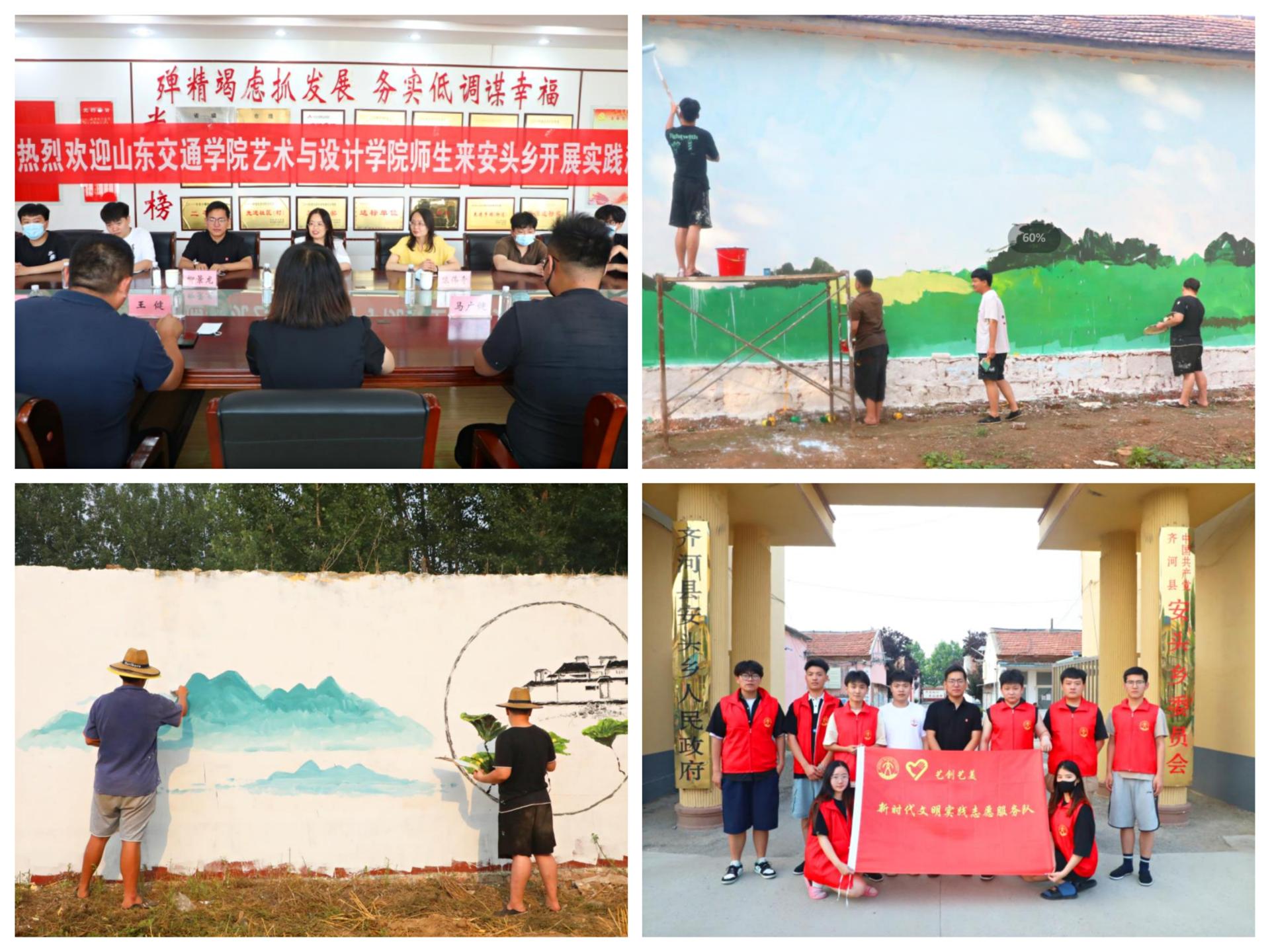 艺术与设计学院“艺创艺美”新时代文明实践志愿服务队赴德州市齐河县安头乡开展了“美丽乡村·手绘青春”大学生志愿者暑期“三下乡”社会实践活动。