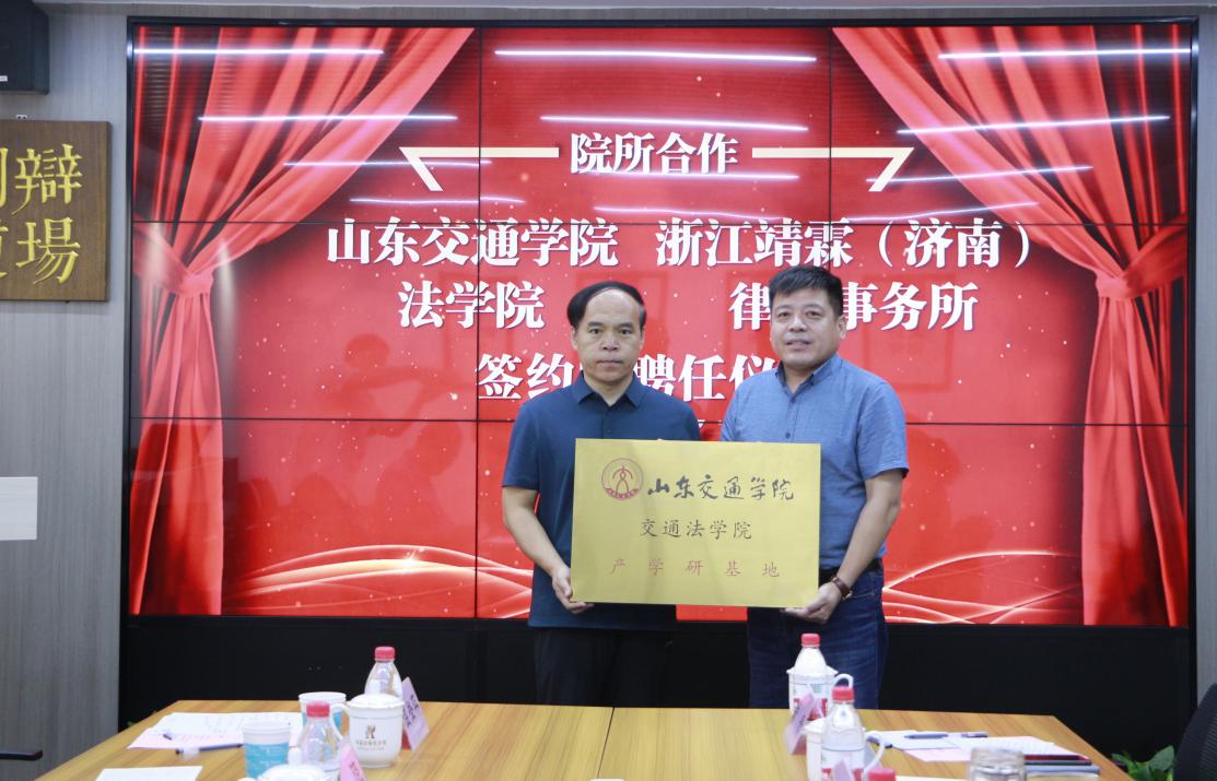 双方共同签署了《山东交通学院—浙江靖霖(济南)律师事务所合作协议》。交通法学院特聘请王之虎为客座教授,聘请浙江靖霖(济南)律师事务所副主任吴黎明、刘道训、朱明志为学院实务导师;浙江靖霖(济南)律师事务所特聘请范冠峰为律所特约顾问。双方举行“山东交通学院交通法学院产学研基地”授牌仪式。