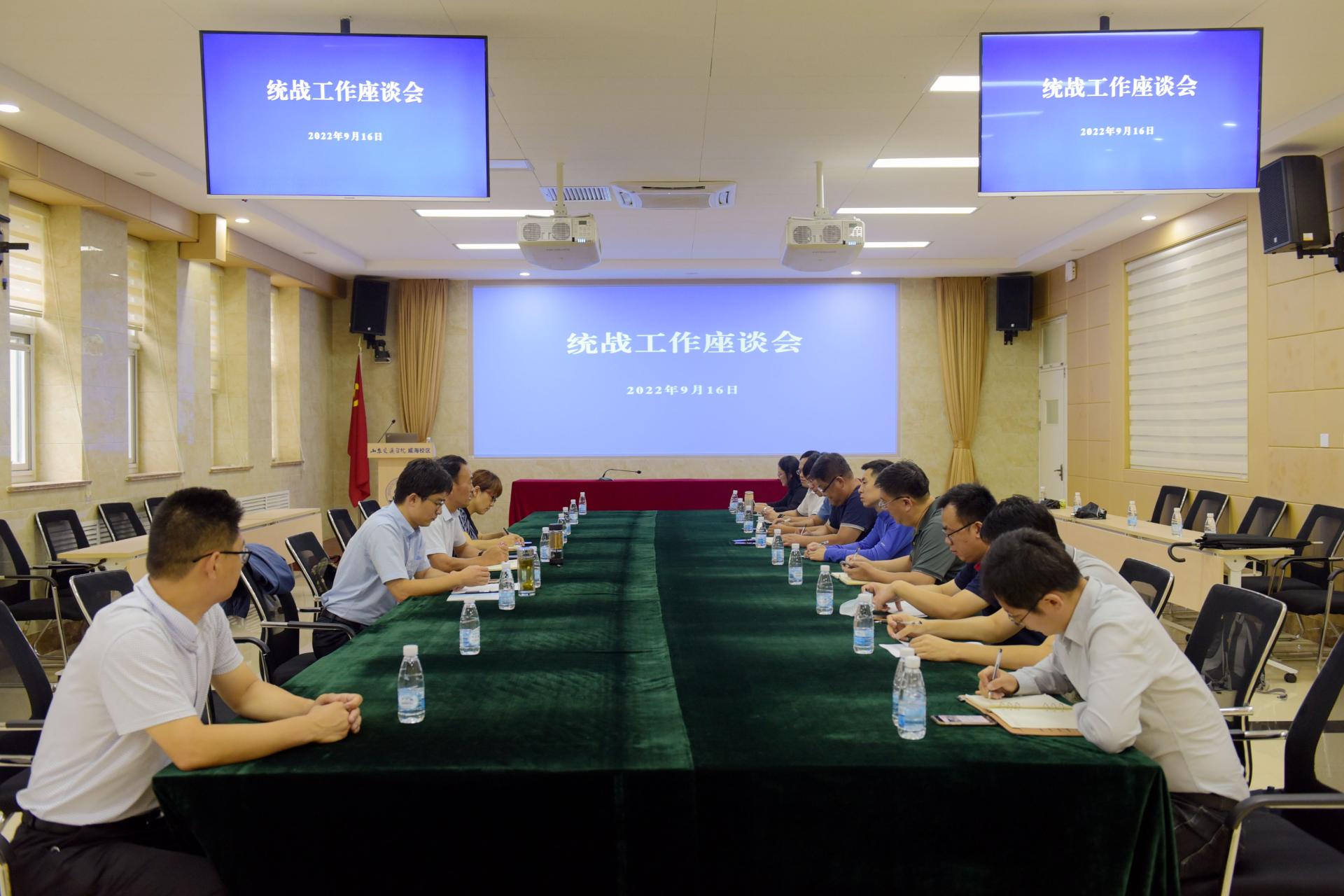 9月16日,党委统战部召集威海校区各基层党委(党总支)统战委员、统战成员代表召开统战工作座谈会,诚挚表达了对大家的关切问候,专题传达了中央统战工作会议精神,详细解读了党外知识分子队伍建设等政策规定,具体征询了对统战工作的意见建议。