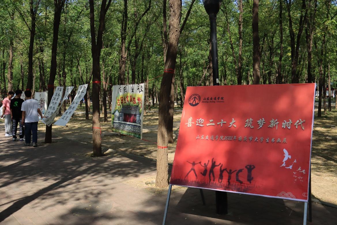 主题系列活动包括升国旗仪式活动及“喜迎二十大 筑梦新时代”大学生书画展活动。在升国旗仪式活动中,学生代表们同升国旗,同唱国歌,齐听朗诵;在书画展活动中,同学们通过一幅幅主题鲜明、生动活泼、形式多样的作品,向伟大祖国致以青年人的“表白”。