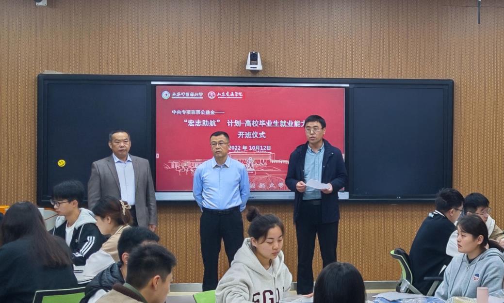 10月12日,学校2022年首期“宏志助航”计划-高校毕业生就业能力提升培训班开班仪式在长清校区举办。我校招生就业处处长周若涛、教师代表及参训学员参加开班仪式,仪式由招生就业处副处长田家军主持。