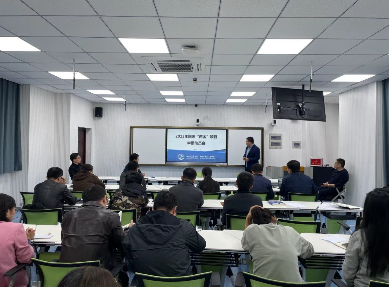 船舶与港口工程学院在威海校区C201召开2023年度国家“两金”项目申报动员会,学院全体教职工参加会议。