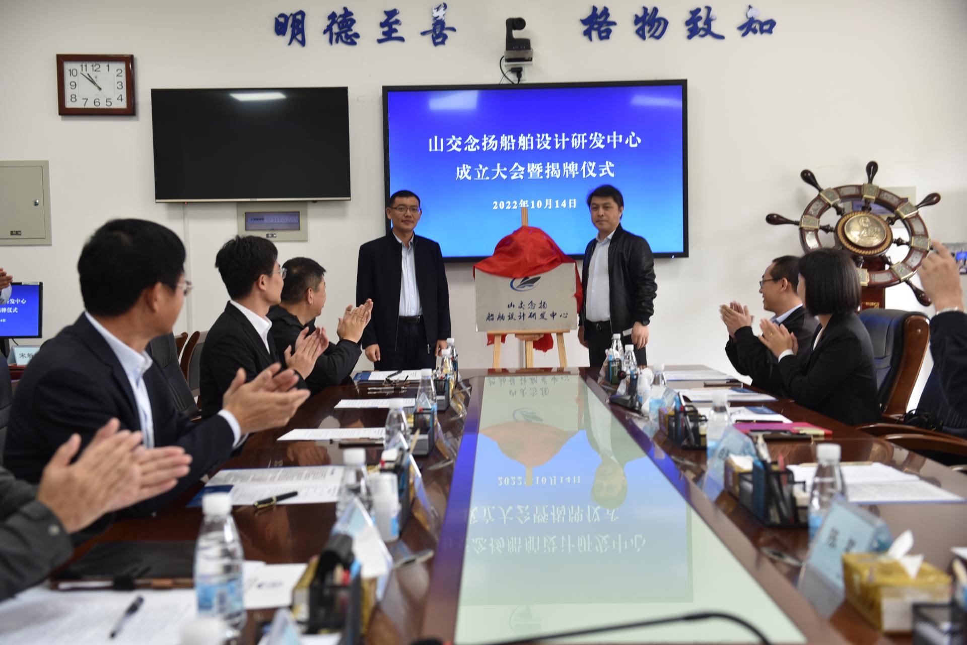 朱鸿义和张业威共同为“山交念扬船舶设计研发中心”揭牌。