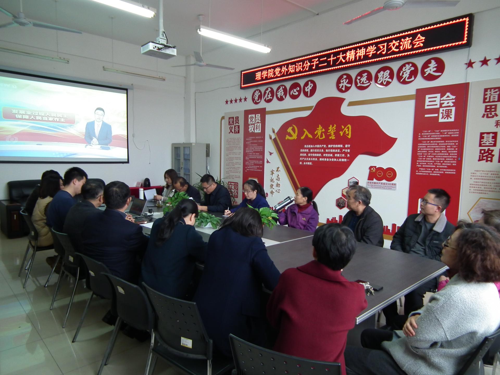 理学院党委在长清校区2A406召开党外知识分子二十大精神学习交流会。理学院党委委员,学院党外知识分子参加会议。会议由理学院党委书记单宝森主持。